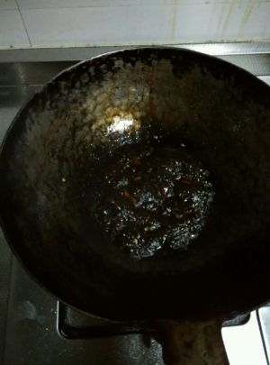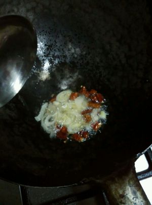 倒入食用油,干辣椒、葱花热油炝锅,葱花微黄即可。