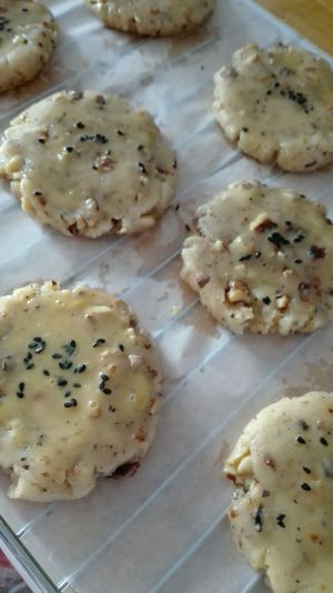 将面团分成等量的小块,搓成球形后压扁,大小因人而异。最后撒上黑芝麻再刷上蛋液。