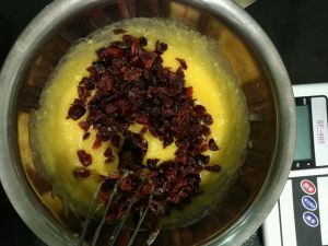 倒入切碎的蔓越莓干。