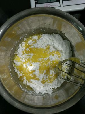 黄油软化后,加入糖粉,搅拌均匀。