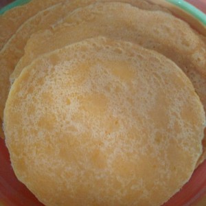 放入锅中,当饼边缘四周出现黄色即可翻面,一定要用小火烙哦。