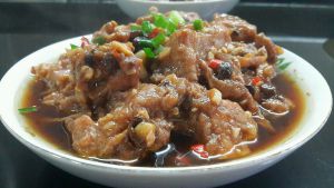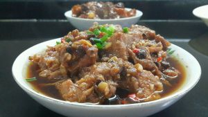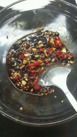 蚝油一勺,酱油两勺与切碎的蒜,小米椒,豆豉混合成汁。