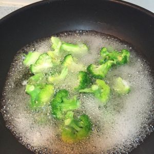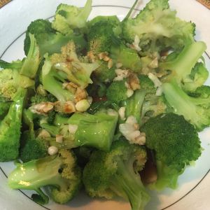 蒜粒用花生油爆香淋上西兰花,浇酱油即可。