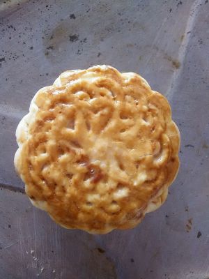 面团也分成等份,我这次只做了4个试下味,将面团压平包入馅料