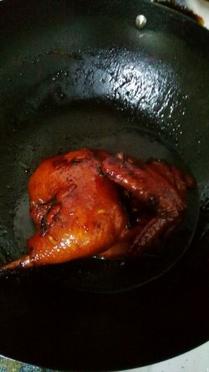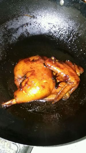 一边煮五分钟后翻过来,用勺子要汁从上面淋下来,然后在煮五分钟在翻过来循环以上反过来淋汁几次即可