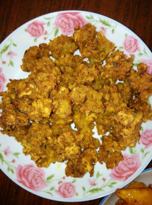 把烤肉锅加油烧热,把调好的肉馅用小勺一勺一个放入锅内,定型后翻面煎炸,炸至金黄捞出,全部炸好后再一次复炸,外酥里嫩