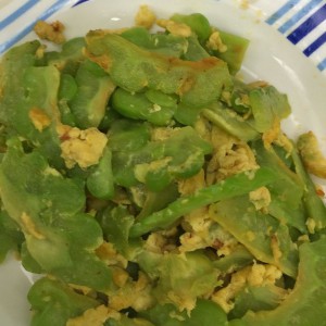 苦瓜切片,加鸡蛋,辣椒酱,盐,味精