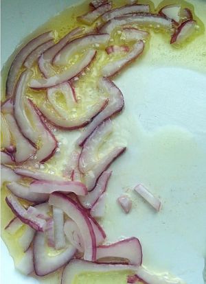 热锅热油,将洋葱炒软