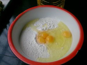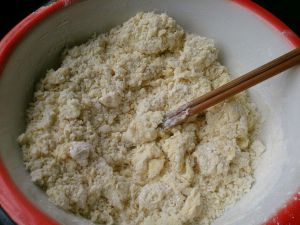 把面粉放在一个大盆里,里面最好能放一点干酵母,我忘记放了→_→