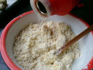 在里头倒入适量的水,这个要自己控制了,最后能揉成软软的面团就可以了~