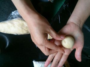 半小时到了呦~把面团搓成一个个小面球~