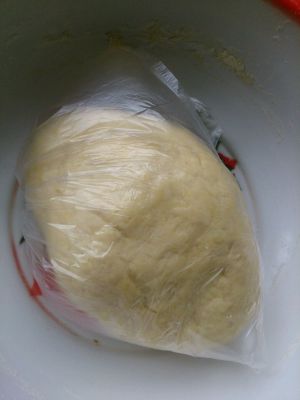 这是揉好的面团,要揉的软一些,放入保鲜袋,醒半小时~