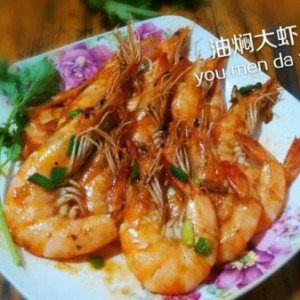 炒锅放适量的油 待油热把姜末蒜末放下去煸出香味后把虾放下去煎至两面变色 变硬