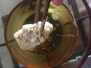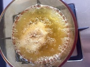 完成以上步骤放入提前加热的热油锅内炸制