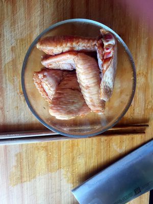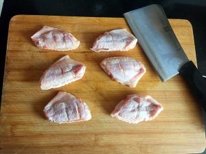 鸡翅洗净,肉厚的地方开刀