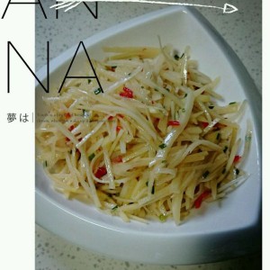 土豆断生变软加入盐,剁辣椒,白醋翻炒均匀加入葱花,起锅。