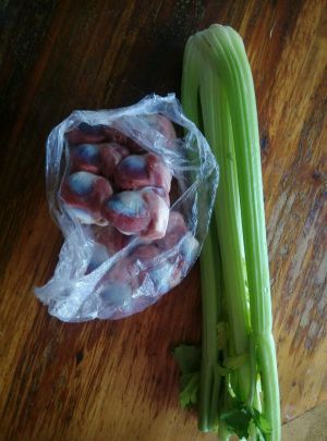 西芹去筋,洗净切段,鸭肾切好放盐,耗油,生粉,油,抓匀腌制