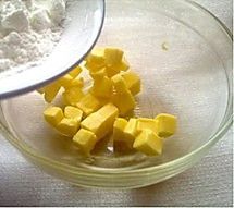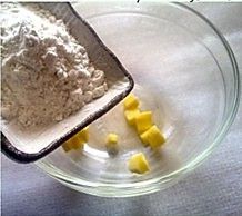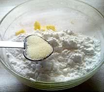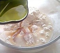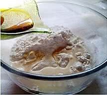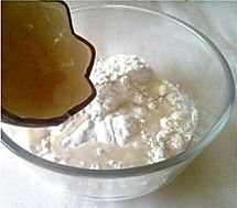 先将材料中的水倒入酵母中,静止片刻,搅拌均匀;
