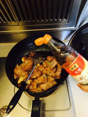 排骨炒到变金黄色加入料酒一勺,炒5分钟