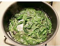 烧开热水,烧开后加一点油和盐在水中,加入菠菜烫灼变色即可捞出,稍微沥水后装入盘中备用。
