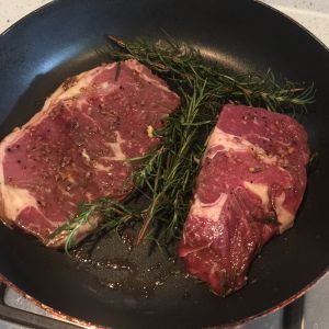 煎牛排,大火,一面煎30到50秒,翻面,同样的时间后放黄油,再翻面,30到50秒后再翻一次,30秒后出锅