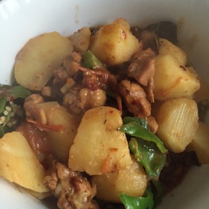 汤汁快收干的时候放入青椒。大功告成……还可以加拉条子在里面。