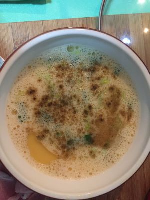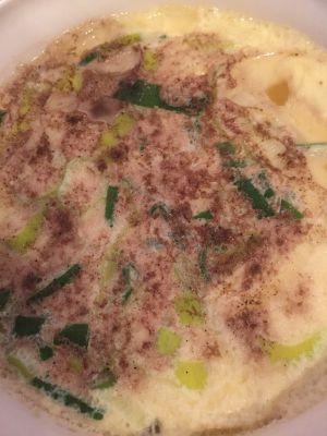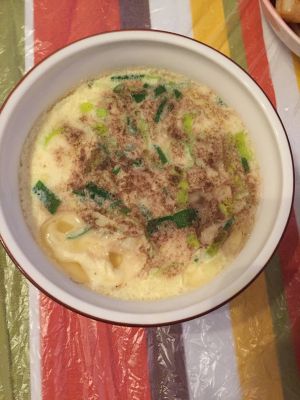 鸡蛋搅碎,放葱花,盐和糖(每个鸡蛋半勺盐)