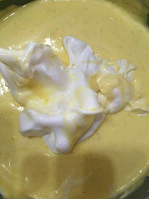 将蛋白糊分3次加入蛋黄糊(同时预热烤箱)