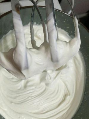 同样用打蛋器打至干性泡发(不能打过了,不然容易起泡不成型)
