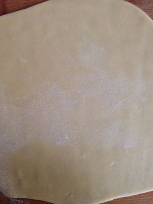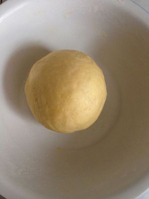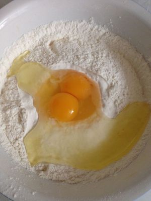 将面粉中间挖个窝,放入鸡蛋和盐,搅拌匀