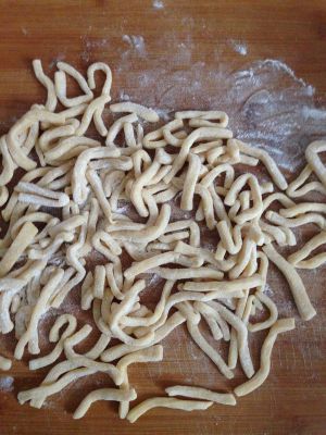 锅里倒入适量菜油,烧热后将切好的面条放入锅中炸