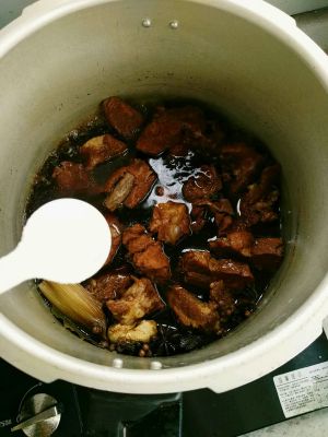 到时间后,等高压锅泄压后 打开尝下咸淡,如果需要放盐 就现在放,然后开火略微咕嘟一下。如果之前调的味正好,就直接可以开吃了。