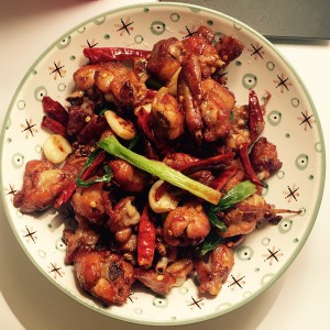 锅里热少许油,放入葱椒蒜花椒辣椒爆香,然后加入鸡翅翻炒