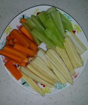 汤快没有时加入蔬菜、1勺盐继续煮。