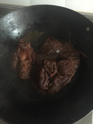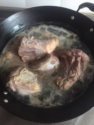 半小时后,改小火继续炖一个半小时,期间要注意翻动一下牛肉。时间差不多了,用筷子插一下,很轻松插进去说明牛肉已经煮到位了。如果汤汁比较多,就大火稍微收下汁。这时候人不要离开,看着锅,别糊了。图中就是差不多收完汁了。