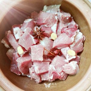 把肉洗干净切小块,放入姜片、八角煮熟。