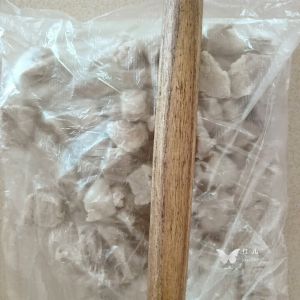 冷却后放入保鲜袋,开始用擀面杖把肉擀成丝。