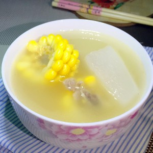 煲开后调中火煲40分钟加玉米再煲10分钟,加盐调味即可