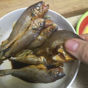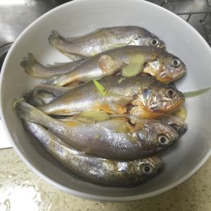 小黄鱼(天猫超市买的,具体多重忘记了,反正收到就是易果生鲜的一袋,)清洗干净,鱼肚鱼鳃一定要好好收拾了~然后反复清洗,图片是我已经处理过准备腌制的了,每次开始做都忘记拍照片~后来才想起来~