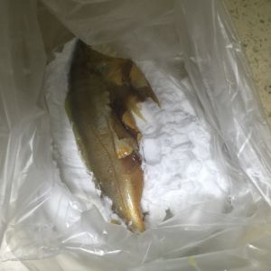 一支保鲜袋!!!一定要!干净卫生!并且特别方便!面粉和淀粉倒进保鲜袋混合好,然后把裹好蛋液的小黄鱼放进袋子里、抓紧袋口、轻轻摇晃,让面粉裹上整只小黄鱼,等待油炸