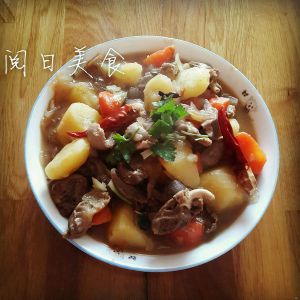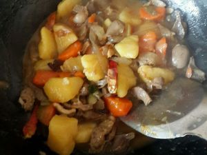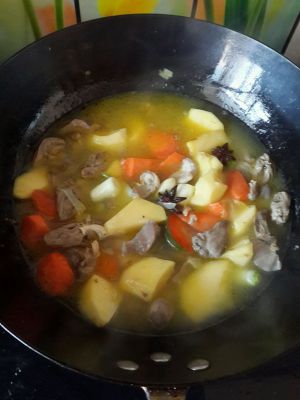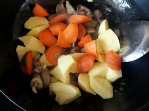 炒匀放入土豆胡萝卜,八角,十三香,盐