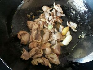 油烧热,下锅翻炒,葱姜蒜都下锅。