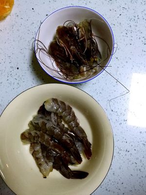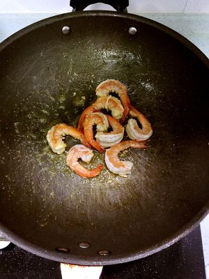 虾去头剥皮,留尾部,虾头炸制成虾油