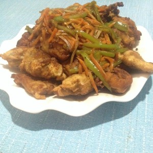 把醋,糖,按自己口味调汁。再放入少许盐、鸡精。把炸好的肉段淋油捞出,锅放少许油,倒入姜丝、葱丝、胡萝卜丝炒香即出锅倒入盘中即可享用咯