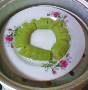 放盘中。上锅蒸。