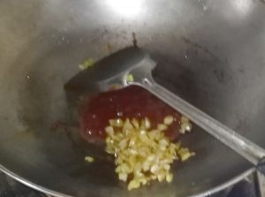 炒酱。佐料放在一起下。有香味即可。
