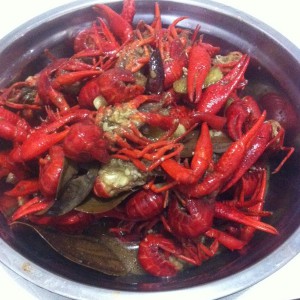 锅里留少许油,把姜片蒜辣椒香叶爆香。把虾倒进去,加些盐炒几下。把啤酒倒进去,加些开水没过虾。