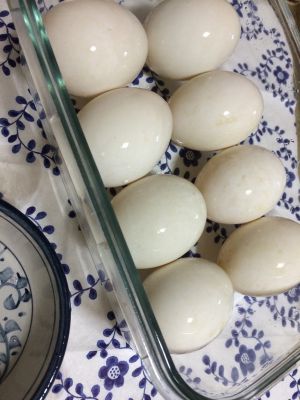 将晾干的鸭蛋放入酒碗里沾满白酒。