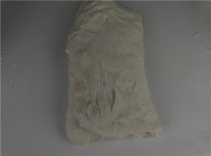 将面团从冰箱拿出,这个时候拉起,已经可以看到不连续的面筋了;