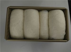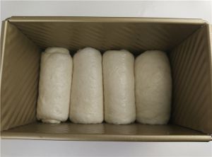 放入土司盒在温度35℃,湿度85%的环境下进行发酵60分钟,发至土司盒9分满,盖上吐司盖